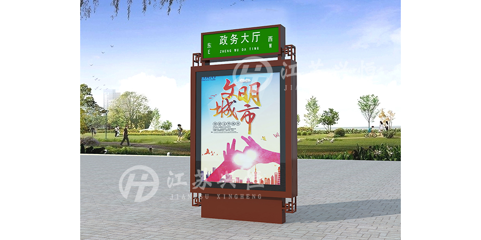 路名牌灯箱,为方便市民出行、导示、辩分方向等,在道路两旁或绿化带上建设的交通设施。由于城市公交的日益发达,路名牌灯箱已发展成为城市一个不可或缺的重要组成部分,设计精美的路名牌灯箱也成为城市一道美丽的风景。一般路名牌灯箱主要由镀锌钢板或不锈钢材料制作,由可视视窗和顶部路牌部分组成,顶部路牌一般多为标准色底反光膜,可视视窗即为广告视窗部分,可发布城市资讯、新闻热点、导购等信息。