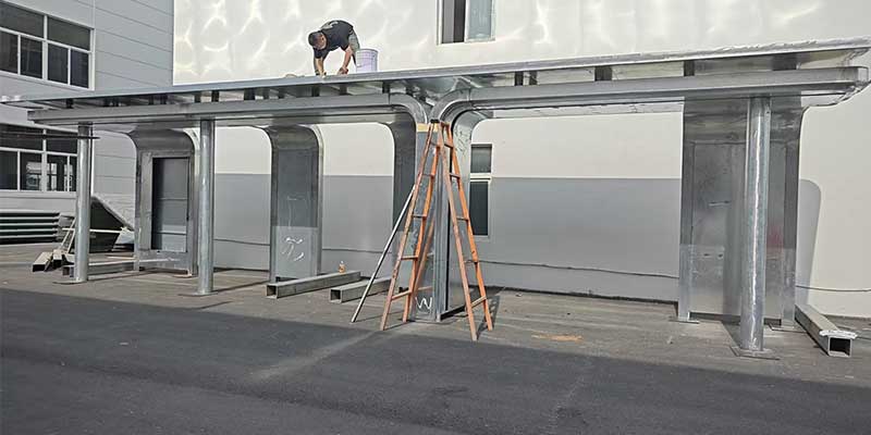 走进新疆候车亭的厂内试搭现场,最先映入眼帘的是充满浓郁地域风情的外观设计。候车亭顶部借鉴了伊斯兰建筑中经典的穹顶造型,流畅的弧线搭配精致的几何镂空雕花,在阳光下投下极具艺术感的光影。这些雕花并非简单装饰,而是通过 3D 扫描技术对传统石膏花模进行高精度复刻,数控折弯机按照精确的曲率半径将金属板材成型,既保留了民族工艺的韵味,又展现出现代工业的精湛技艺。